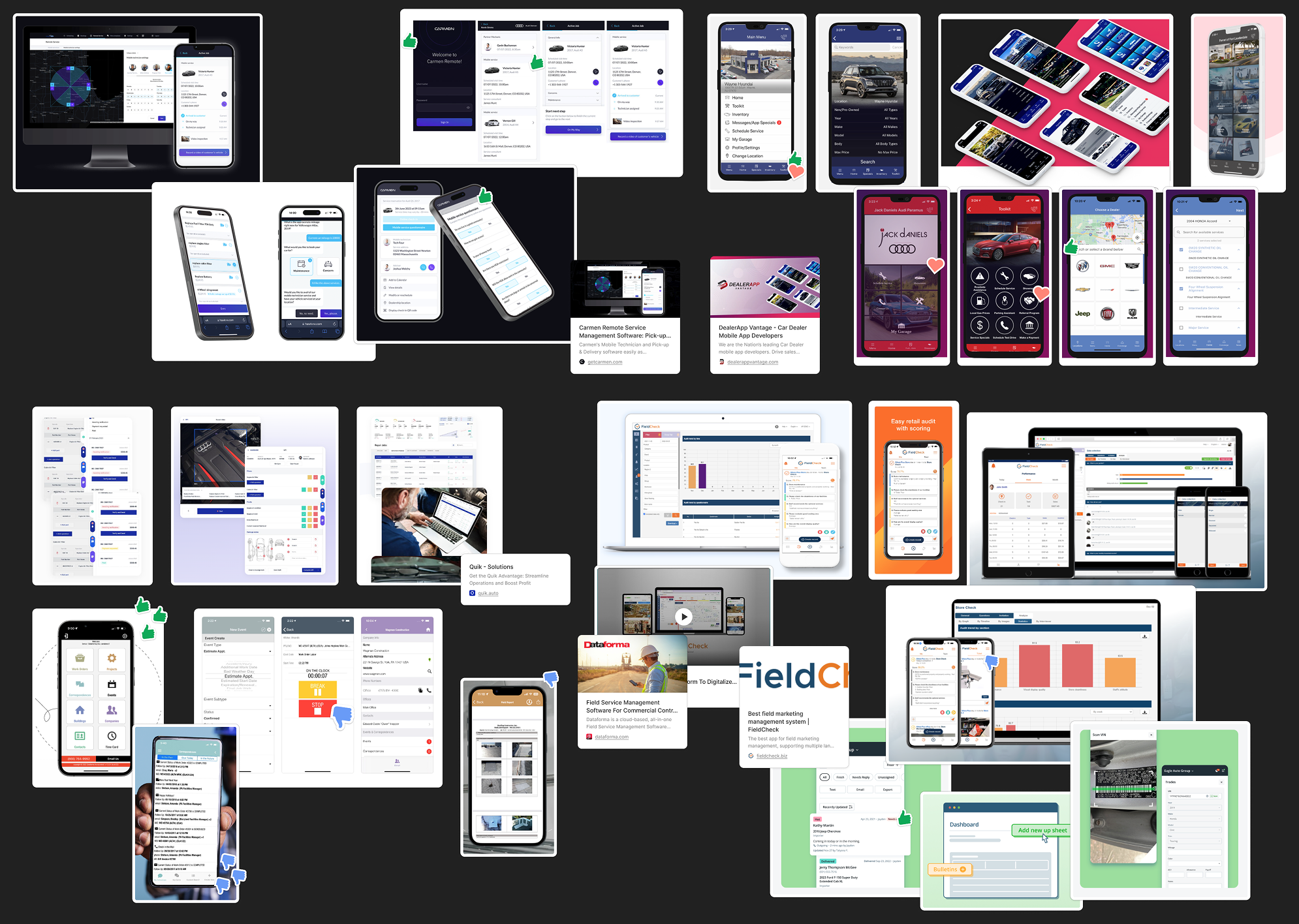 I reviewed a range of mobile and enterprise applications used in service, logistics, and operational environments to understand how complex workflows, task status, and field reporting were structured.