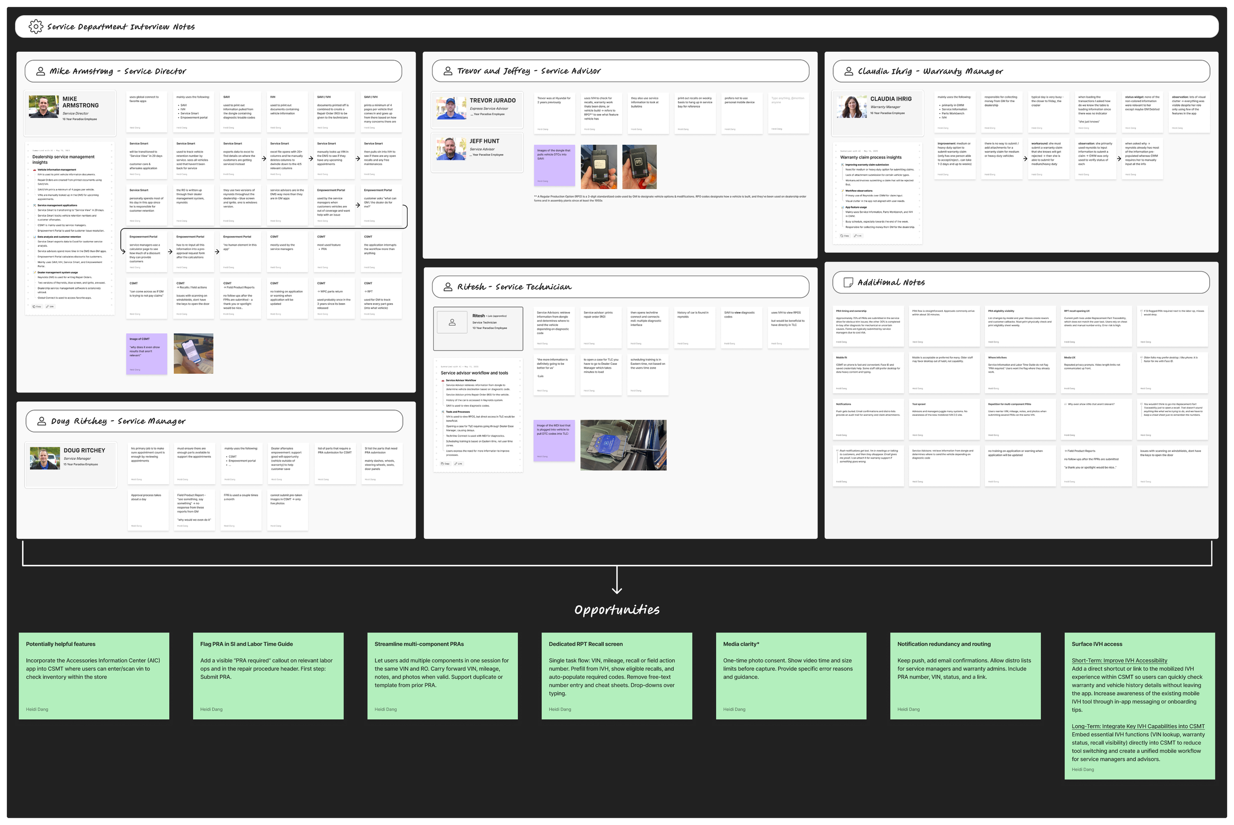 Research was conducted through dealership visits and technician interviews across multiple GM locations. Observing service advisors, technicians, and managers in the service lane helped reveal how work actually unfolded beyond what usage data showed.